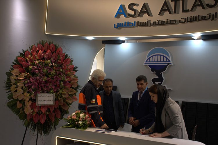 بازديد آقايان دكتر خادمي معاون محترم وزير و مدير عامل شركت مادر تخصصي ساخت و توسعه زيربناهاي حمل و نقل كشور، دكتر خطيبي معاون ساخت و توسعه راه آهن و بنادر و فرودگاهها، آقاي مهندس كدخدازاده معاون محترم ساخت و توسعه راه ها و بزرگراه ها به همراه آقاي دكتر ملازينل سرپرست ساخت و توسعه آزادراه ها از غرفه آسا اطلس